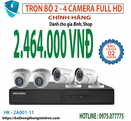 Trọn bộ Camera 2-4 Hikvision HK-A001 HD1080p dành cho Gia đình, Cửa hàng